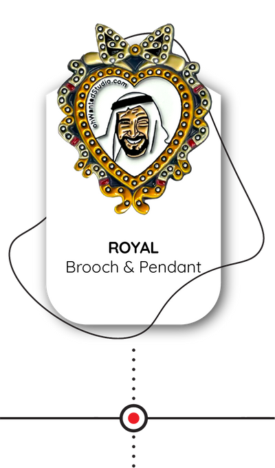 - Product Type: Brooch - Design: Sheikh Sultan bin Muhammad Al Qasimi - Material: Metal - Weight: - Size: 29x24mm